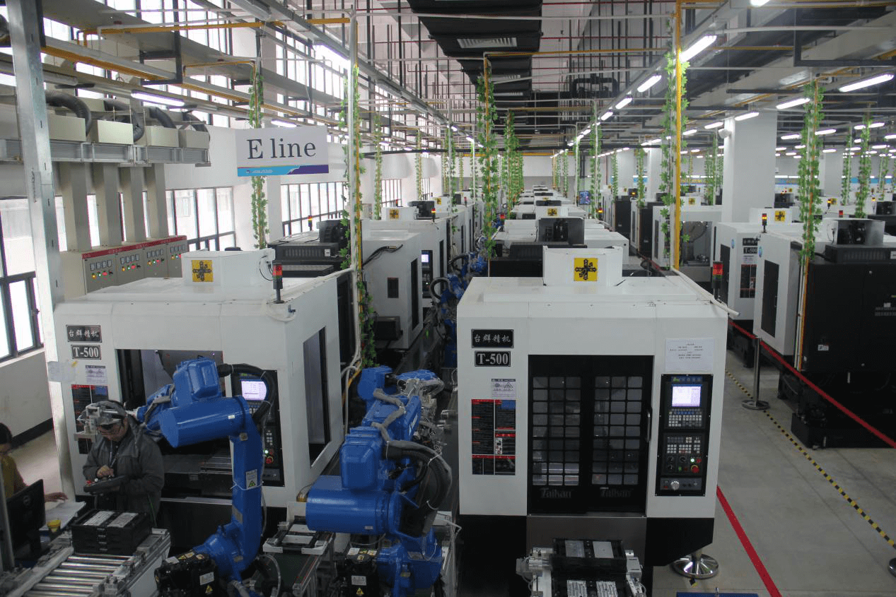 3C制造智能工廠是工業(yè)和信息化部 2015 年智能制造試點(diǎn)示范項(xiàng)目之一。該項(xiàng)目由勁勝精密公司牽頭,是智能制造技術(shù)在3C行業(yè)的示范,實(shí)現(xiàn)了高速高精國(guó)產(chǎn)鉆攻數(shù)控設(shè)備、數(shù)控系統(tǒng)與機(jī)器人的協(xié)同工作,在業(yè)內(nèi)率先實(shí)現(xiàn)零件裝夾環(huán)節(jié)采用機(jī)器人代替人工操作,節(jié)省70%以上的人力,降低產(chǎn)品不良率,縮短產(chǎn)品研制周期,提高設(shè)備利用率,提升車間能源利用率,最終實(shí)現(xiàn)少人化、人機(jī)協(xié)同化生產(chǎn)。