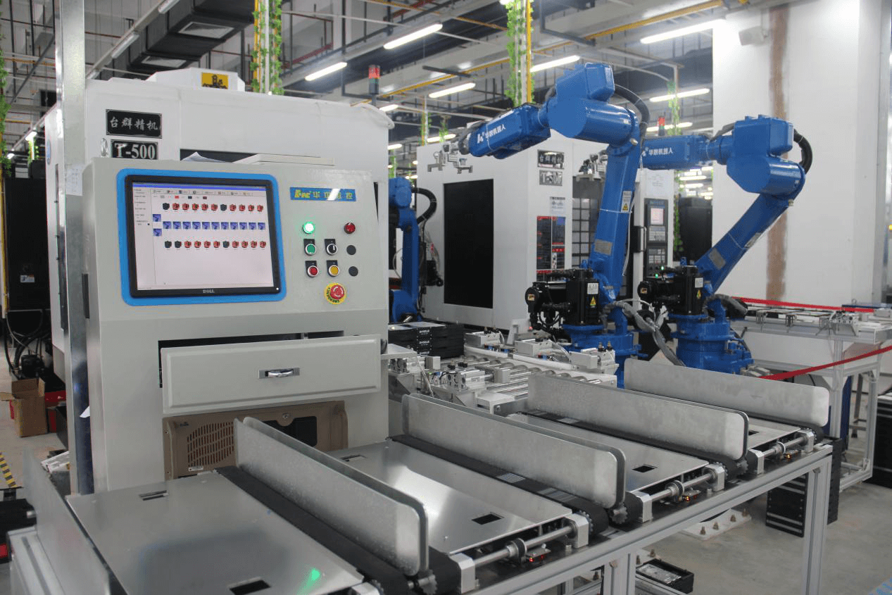 批量配套華中8型系統(tǒng)及華數(shù)機(jī)器人的智能工廠現(xiàn)場(chǎng)全景