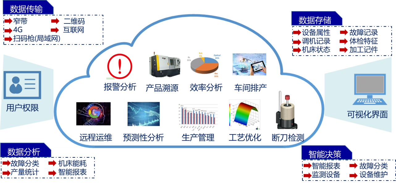 目前,NC-Link協議已在武漢華中數控股份有限公司、廣州數控設備有限公司、科德數控股份有限公司、沈陽高精數控股份有限公司、沈機(上海)智能系統研發設計有限公司等聯盟成員的數控產品實現了應用。同時,在武漢、上海、廣州、西安、廣東等地建立了云數據中心,搭配自主研發NB-IoT等通訊裝置,在數千家企業及高校(包括華中數控公司、華數機器人公司、蘇州勝利精密公司、東莞勁勝公司、東風楚凱公司、寶雞機床集團、吉林通用機械集團、華中科技大學等)進行了部署實施,每天匯聚并處理上億條數據,采集數控裝備中上千個點位信息,涵蓋設備狀態、報警信息、加工計件、采樣數據、調機數據等各種工況。